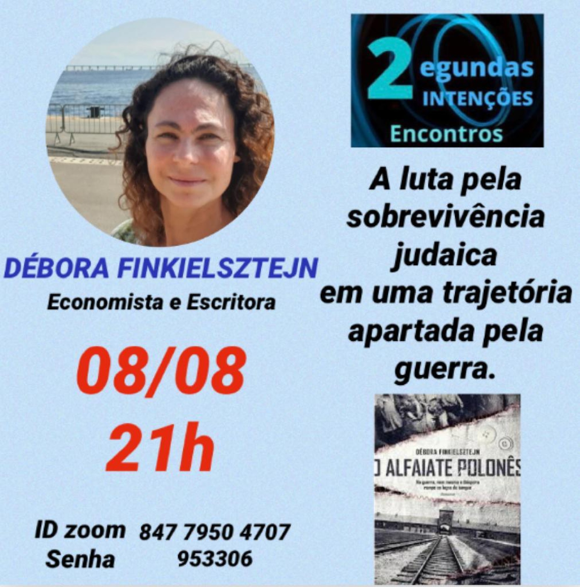 Débora Finkielsztejn vai falar no programa 2.as Intenções da próxima segunda-feira (8), as 21h, sobre o seu livro “O Alfaiate Polonês”, que conta a saga da família Luitterman, entre os anos 1930 e 1970, com a dispersão pelo mundo e o desenvolvimento de suas histórias durante este período. “O Alfaiate Polonês” é um romance que retrata a trajetória de uma família apartada pela guerra, a busca pela sobrevivência e as dificuldades em um mundo destroçado por conflitos que marcaram o século XX. Avraham, o personagem principal, é convocado para servir no exército polonês, juntamente com seu irmão, pouco antes do início da 2a Guerra Mundial. Suas vidas tomam rumos distintos, levando a um desencontro com desfecho surpreendente. Em 2020 foi finalizada a versão em inglês e que agora encontra-se disponível na Amazon sob o título “The Polish Tailor”.