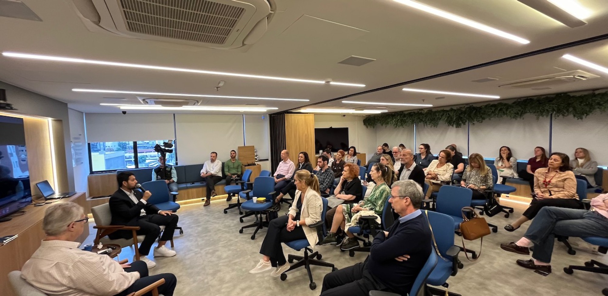 Na quinta-feira, 18 de abril, ele compartilhou suas experiências durante um bate-papo na Sede da Federação Israelita do Estado de São Paulo, mediado pelo presidente executivo Ricardo Berkiensztat, que contou com a presença de profissionais comunitários.