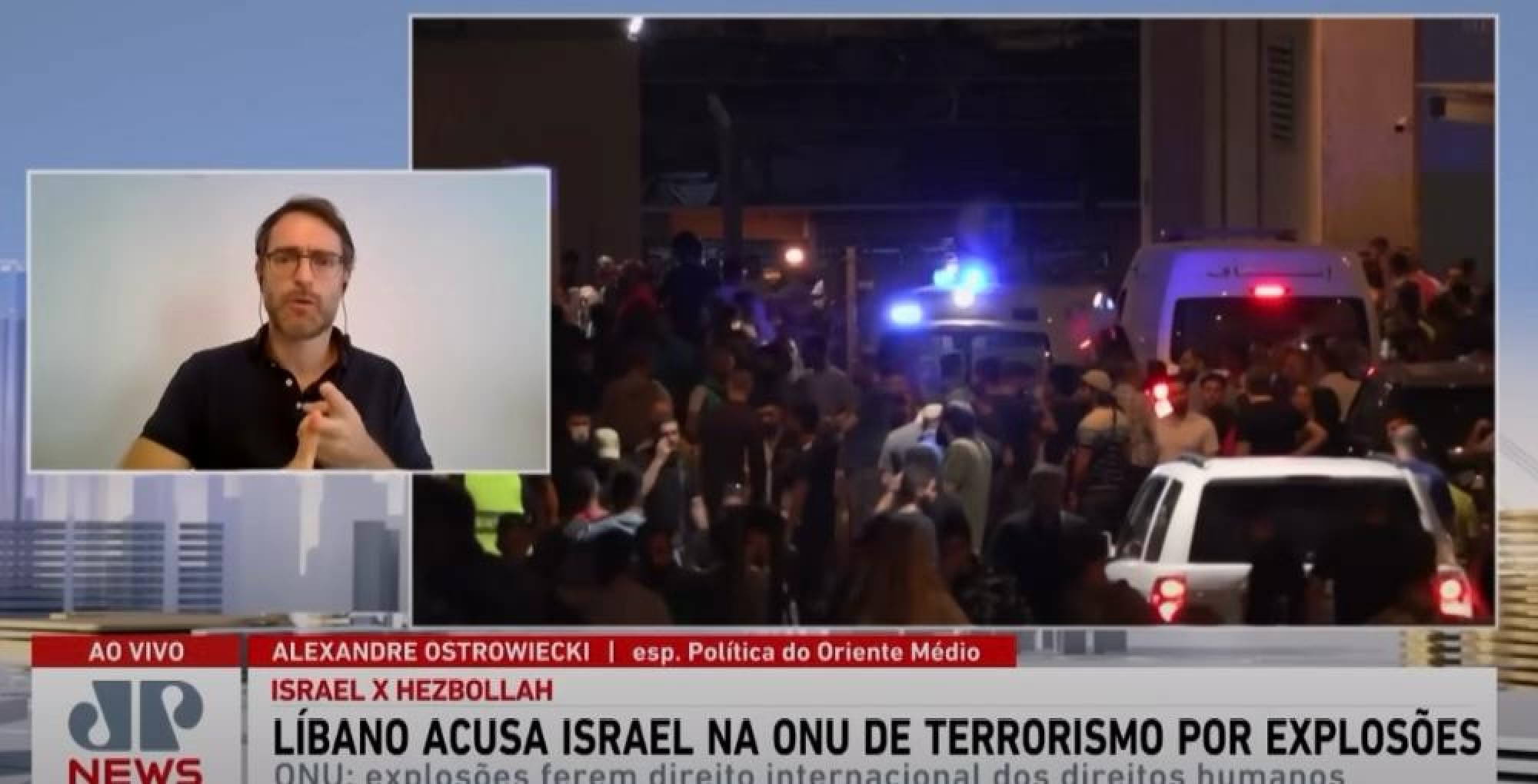 Em entrevista à Jovem Pan News, Alexandre Ostrowiecki, especialista em política do Oriente Médio, falou sobre a decisão do Líbano de acusar Israel na ONU de terrorismo pelo caso dos aparelhos com explosivos. “A lei internacional é muito clara, embora cada um tenha uma forma de interpretá-la. Mas uma definição oficial internacional define terrorismo como um tripé: tem que ser uma ação deliberada - um acidente, por exemplo, não é considerado terrorismo; em segundo lugar tem que ser uma ação contra civis e não contra combatentes; e em terceiro lugar tem que ser uma ação com propósitos políticos. Se houver uma explosão numa usina, por exemplo, isso não é considerado terrorismo. Mesmo um ataque a um civil, sem um propósito político não é considerado terrorismo. Então essa ação com aparelhos explosivos, que certamente foi planejada e executada por Israel, mirou combatentes do Hezbollah. Foram aparelhos comprados pelo Hezbollah e entregues a militantes do grupo, portanto não se trata de ato terrorista. Você pode não gostar dessa ação, mas não se pode chamá-la de terrorismo. Terrorismo é o que o Hezbollah faz, quando lança mísseis indiscriminadamente contra a população civil israelense. Isso é feito de forma deliberada e mirando em civis, como a recente ação em que foram mortas 12 crianças num campo de futebol em Israel. Essa ação teve o objetivo político de destruir o Estado de Israel. Isso sim é terrorismo tecnicamente”, destacou.