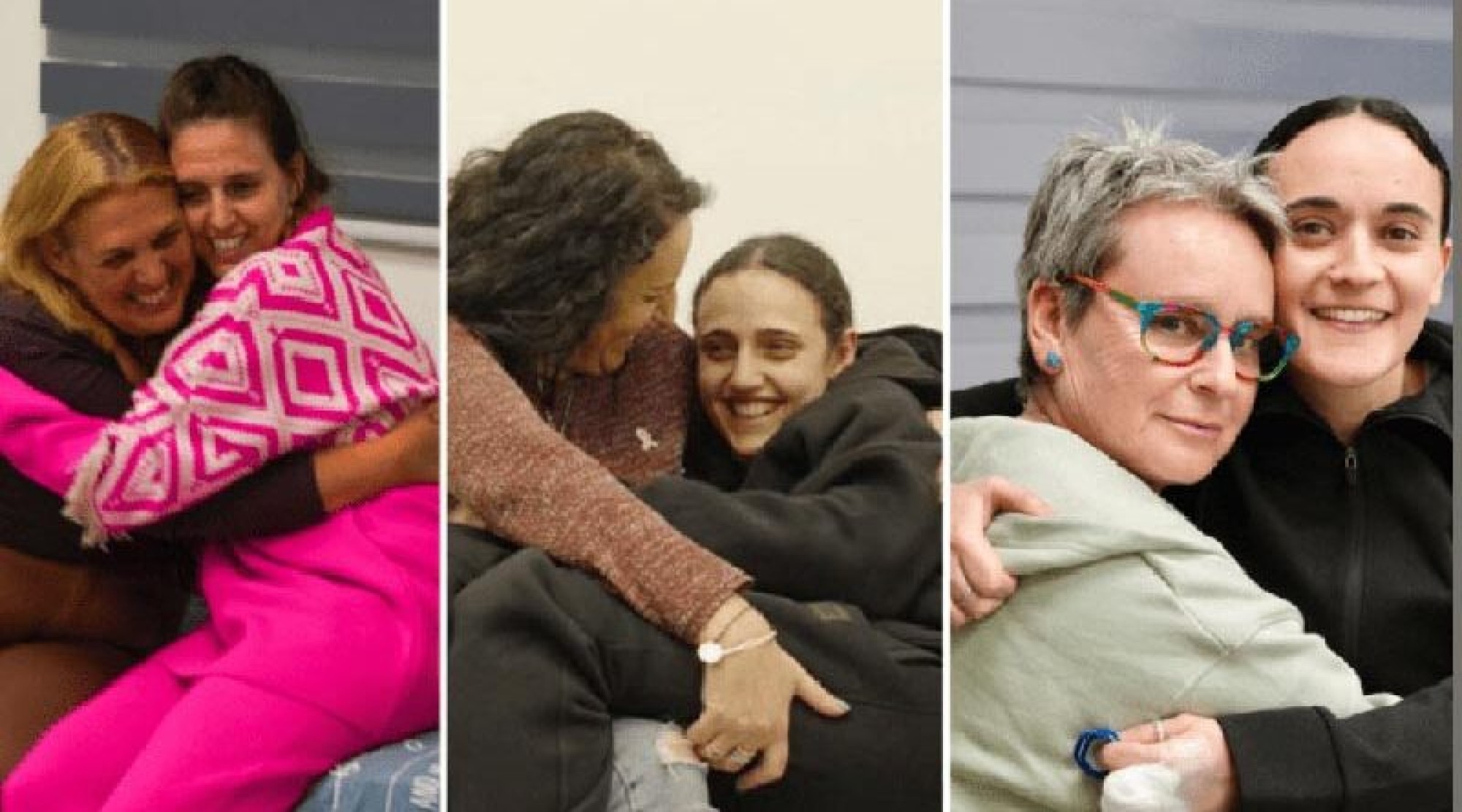 Libertadas após 471 dias mantidas em cativeiro pelo Hamas, em Gaza, as reféns Romi Gonen (24), Emily Damari (28) e Doron Steinbrecher (31) se reuniram com suas mães num primeiro momento, depois de passarem por rápida avaliação médica.