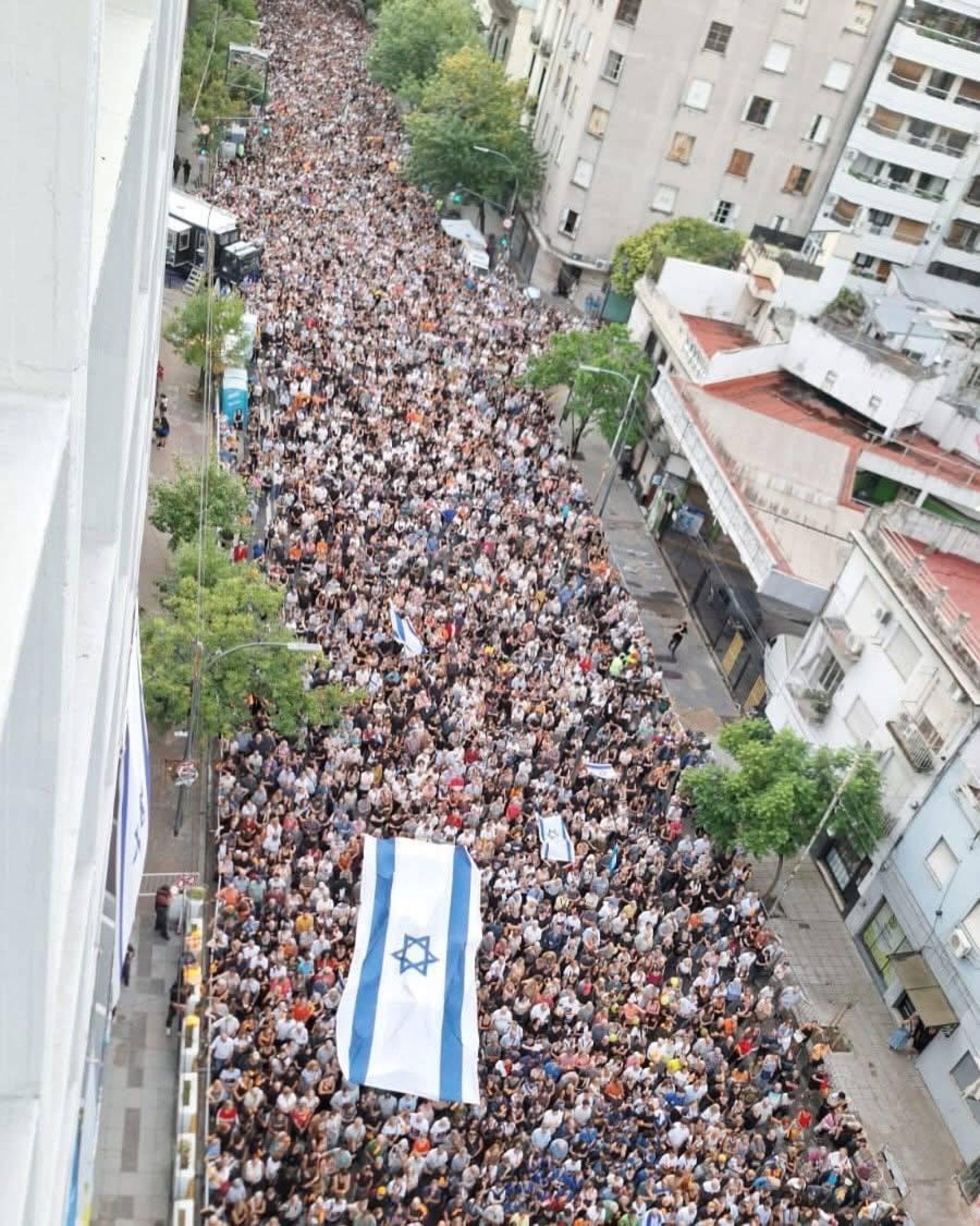 Cerca de 15 mil pessoas saíram às ruas de Buenos Aires na segunda-feira (24) para homenagear a memória de Shiri, Kfir e Ariel Bibas, juntamente com outras vítimas do ataque do Hamas em 7 de outubro de 2023, e para pedir a libertação de todos os reféns que continuam em cativeiro em Gaza.