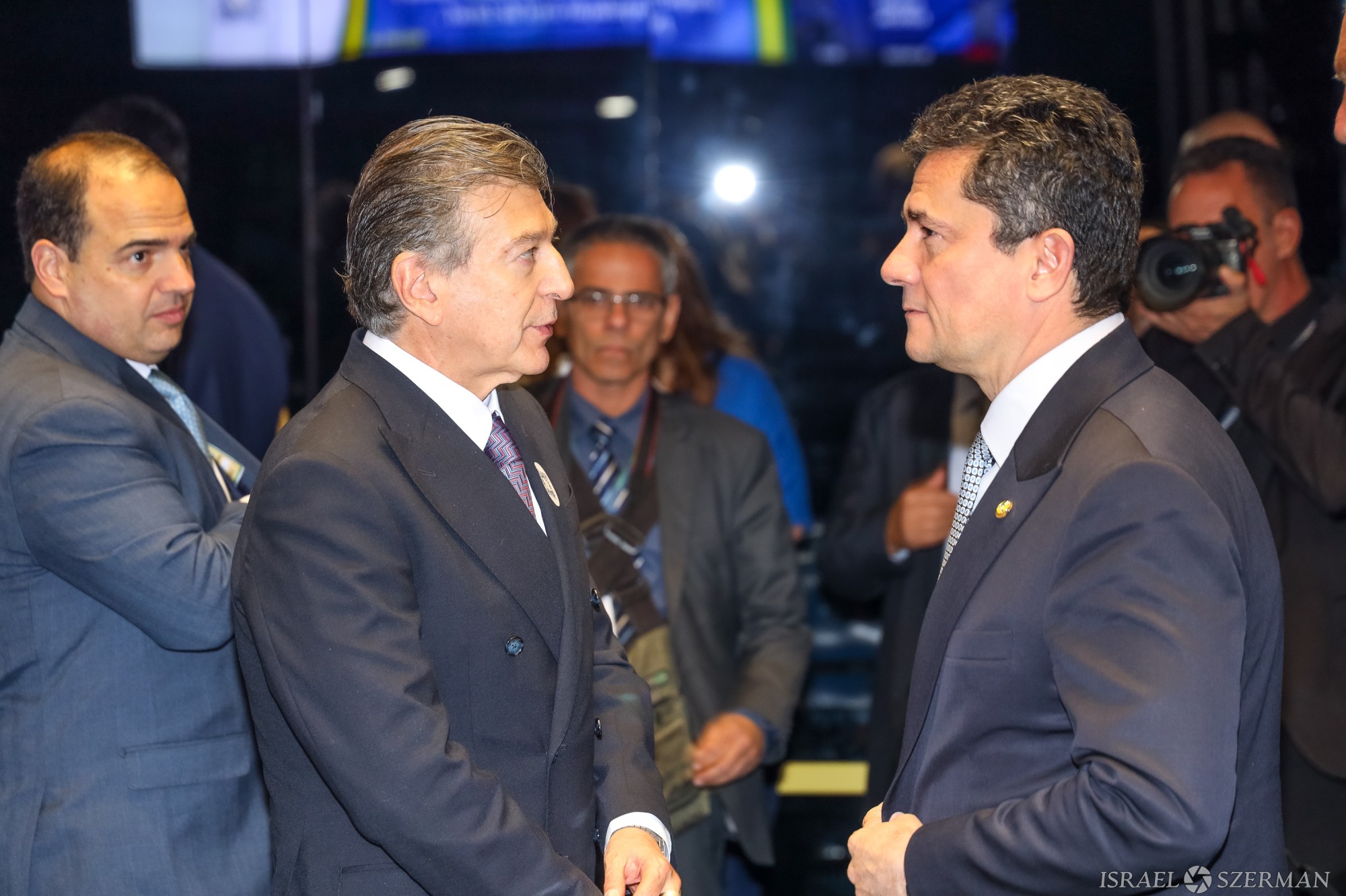 O senador Sergio Moro , autor da iniciativa que também contou com o apoio do presidente do Senado, Davi Alcolumbe, abriu e concedeu o evento de forma impecável, manifestando solidariedade às famílias das vítimas e às que ainda aguardam a liberação de seus entes mantidos presos em Gaza. “Hoje estamos aqui reunidos para cumprir um dever que transcende ideologias”, disse Moro, ao lembrar os ataques em que mais de 1.200 pessoas foram brutalmente assassinadas pelo Hamas e outras mais de 200 sequestradas. Moro defendeu o direito de Israel à autodefesa, previsto na legislação internacional. “Infelizmente esses ataques nos remetem a outros crimes perpetrados contra os judeus”.