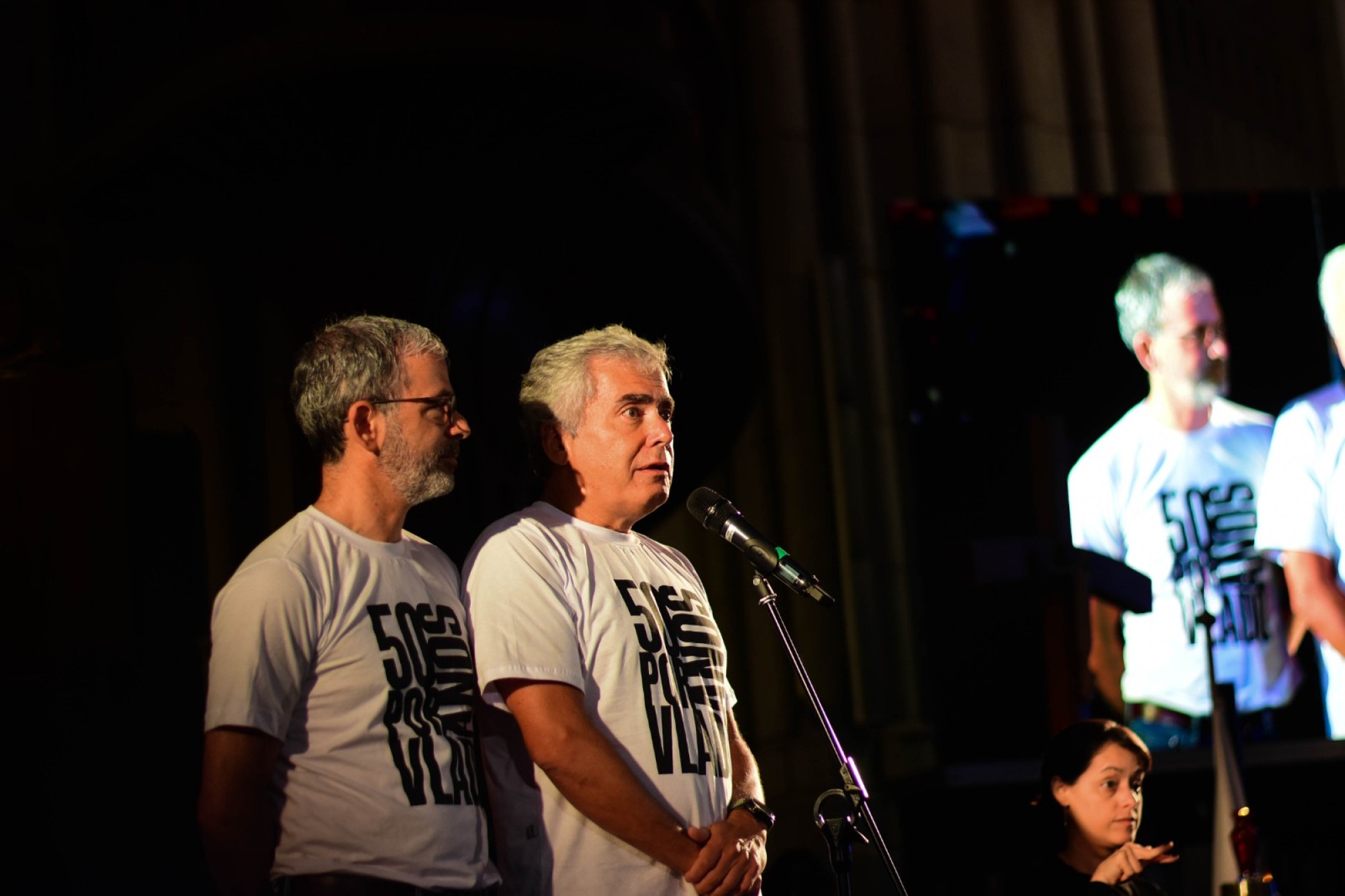 “Estamos aqui, na Catedral da Sé, para recriar um gesto — o mesmo que desafiou a ditadura naquela 6ª feira, 31 de outubro de 1975. Um gigantesco gesto de coragem. Há 50 anos, quando o país vivia sob às sombras mais densas da opressão e do medo, Vladimir Herzog — o Vlado, assassinado 6 dias antes – era imortalizado como símbolo da verdade, da dignidade e da resistência em nosso país.