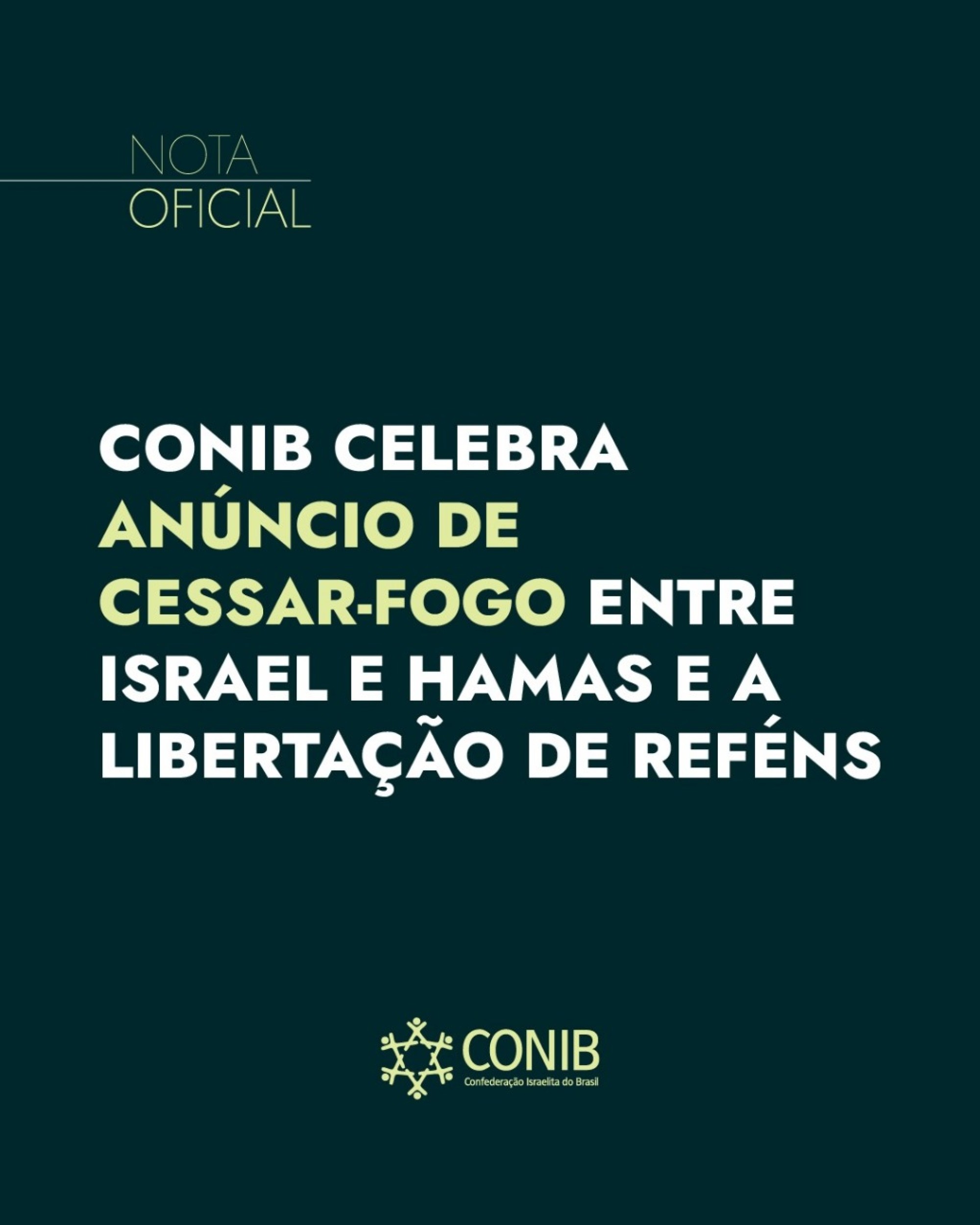 A Confederação Israelita do Brasil celebra o anúncio de um cessar-fogo entre Israel e o grupo terrorista Hamas, após 467 dias de conflito causado pelo bárbaro ataque do grupo terrorista em solo israelense no dia 7 de outubro de 2023 e o sequestro de 255 pessoas de várias nacionalidades.
