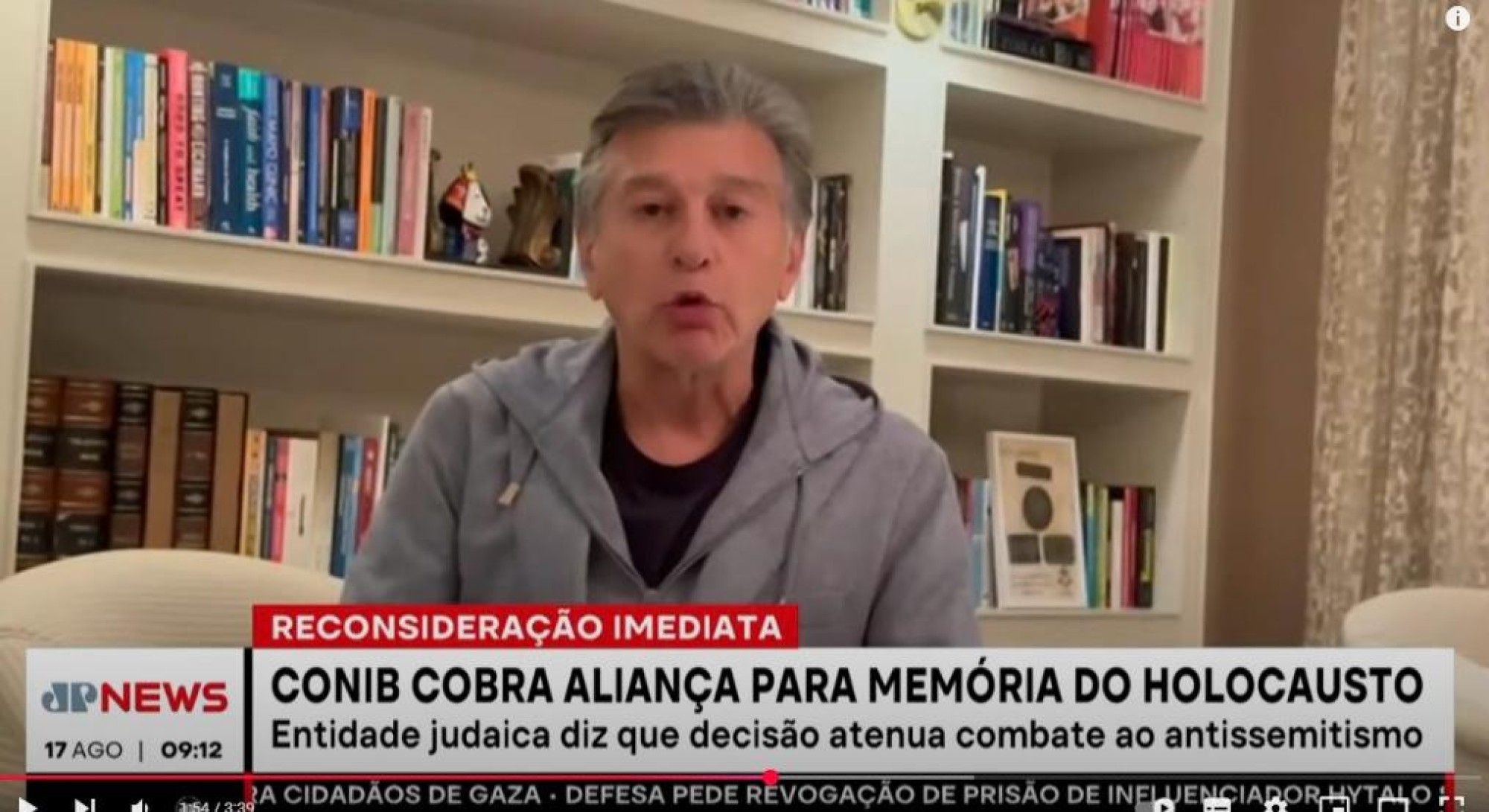 A Jovem Pan News divulgou matéria sobre o vídeo com o manifesto da CONIB pedindo que o governo volte atrás da decisão de retirar o País da Aliança Internacional para a Memória do Holocausto (IHRA). O vídeo mostra trechos do Manifesto lidos por diretores da CONIB e pelos presidentes das federações israelitas do País e termina com declarações do presidente da CONIB, Claudio Lottenberg.