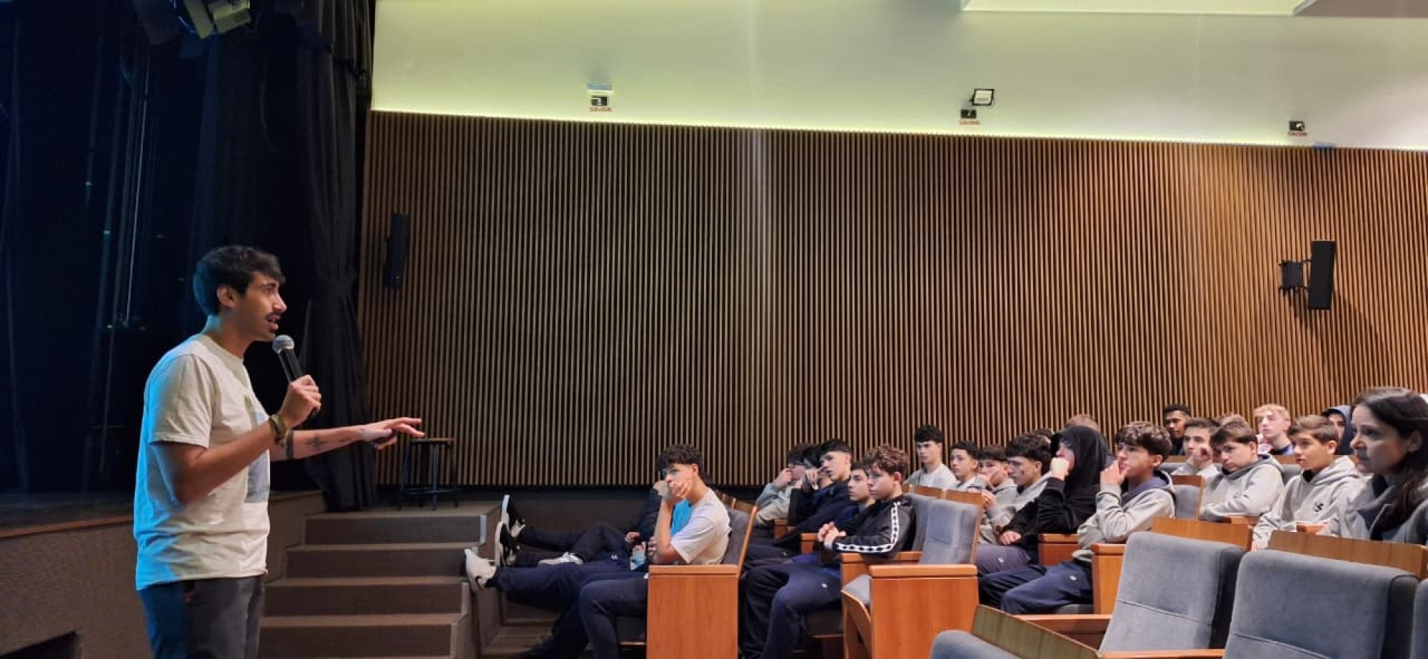Durante sua passagem pela capital paranaense, participou de rodas de conversas e palestras em escolas e faculdades, levando seu relato pessoal sobre o atentado no Festival Nova, em Israel, e promovendo reflexões sobre empatia, resiliência e o compromisso com a paz.