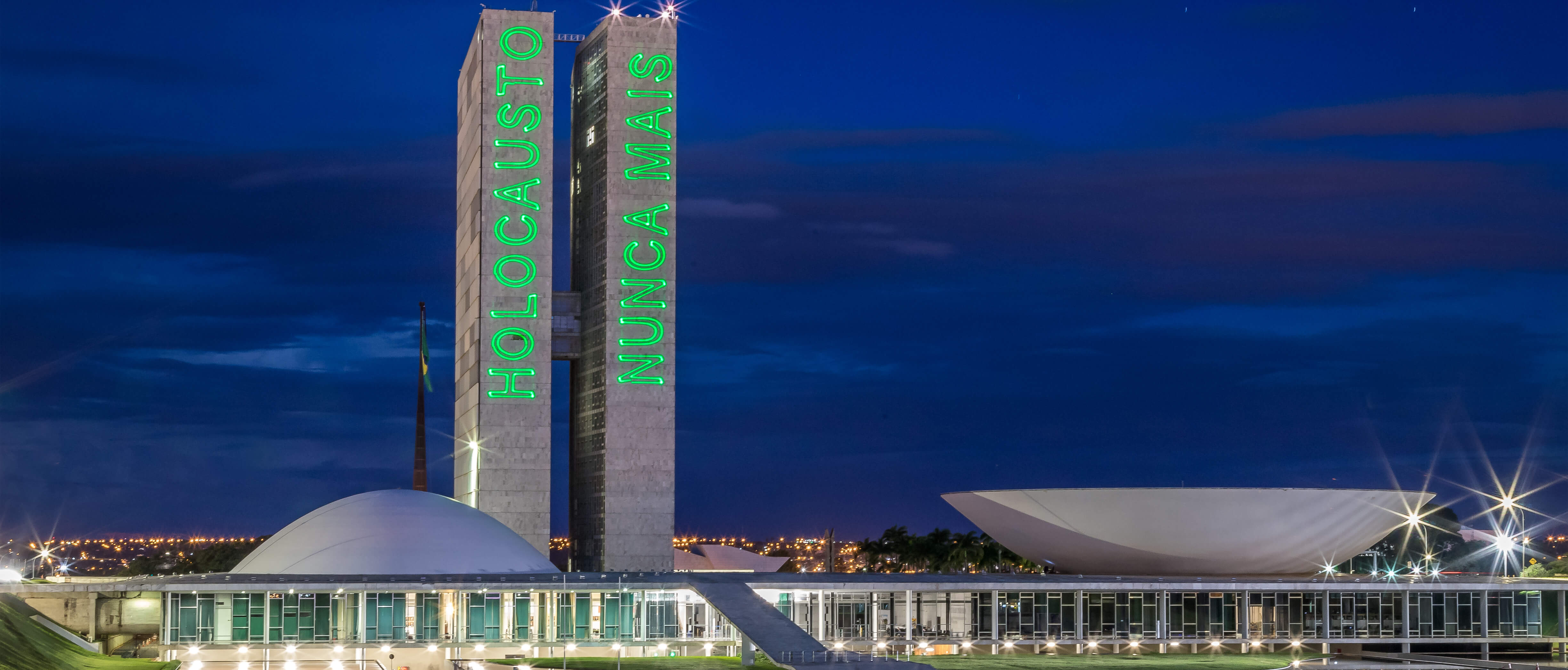 Alcolumbre homenageia vítimas do nazismo e destaca parceria com a Conib para a projeção nas torres do Congresso