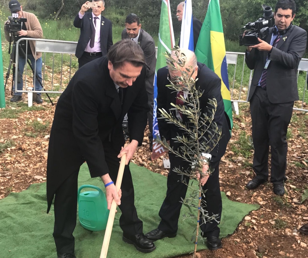 Depois de visitar o Museu do Holocausto em Israel, nesta terça-feira, 02 de abril, o presidente Jair Bolsonaro participou da cerimônia de plantio de uma oliveira no Bosque das Nações, do Keren Kayemet Le Israel (KKL), localizado ao lado do Yad Vashem. Desde a fundação do Estado de Israel, todos os chefes de Estado em visita oficial ao país, são convidados a plantar uma muda de árvore no Bosque das Nações do KKL. 'Hoje, todos os brasileiros que colaboram com o KKL há quase um século e cujos pais e avós adquiriram um diploma do KKL Brasil, podem se orgulhar, pois agora o nosso presidente da Republica também tem um Certificado do KKL', declarou Eduardo El Kobbi, presidente do KKL Brasil.