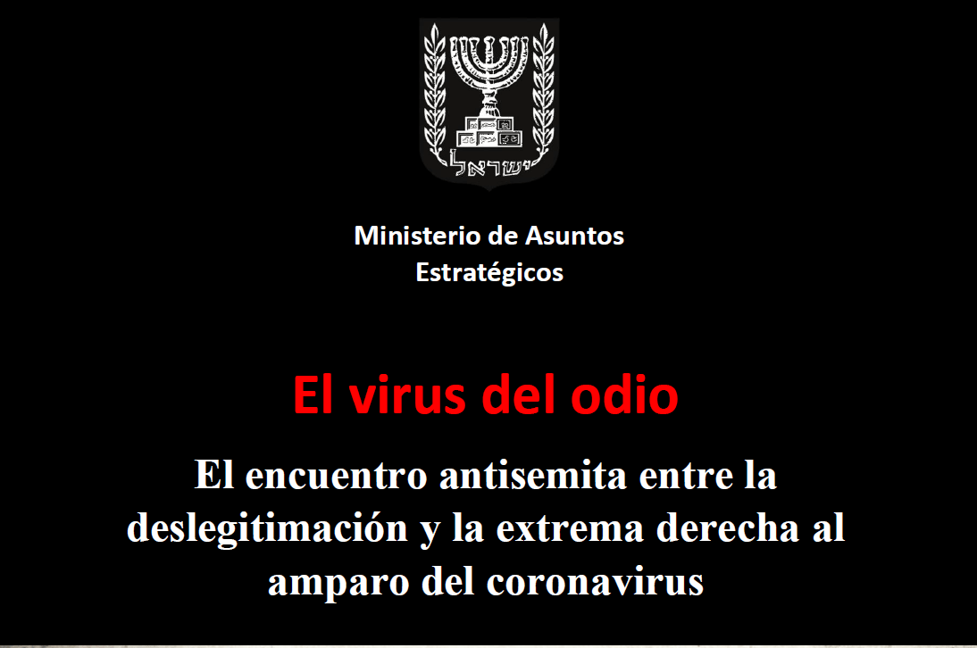 O Ministério de Assuntos Estratégicos de Israel divulgou um relatório que aponta o uso o uso generalizado do coronavírus com o objetivo de promover a deslegitimização do Estado de Israel pela disseminação de teorias da conspiração, usando motivos antissemitas. O relatório, apresentado como 'O vírus do ódio - O encontro antissemita entre deslegitimização e extrema direita sob amparo do coronavírus' é uma continuação do elaborado em setembro de 2019, 'Por trás da máscara', que expõe o vínculo entre a campanha BDS ea deslegitimação e antissemitismo de Israel. Após o surto do coronavírus e continuando o relatório anterior, o Ministério de Assuntos Estratégicos tem acompanhado as manifestações de deslegitimização e antissemitismo em todo o mundo que ligam judeus e o Estadode Israel à pandemia. O acompanhamento é realizado por meio do monitoramento de redes sociais, entre outras, das organizações de deslegitimação e boicote, bem como do monitoramento das declarações de funcionários estaduais e semi-estatais hostis. De acordo com o documento, o cenário emergente da situação é o uso generalizado do coronavírus com o objetivo de promover a deslegitimização do Estado de Israel pela disseminação de teorias da conspiração, usando motivos antissemitas. As teorias da conspiração e as expressões de deslegitimização com motivos antissemitas, recentemente disseminadas nos contextos de coronavírus, são, de acordo com o documento, divididas em dois grupos: Antissemitismo clássico contra os judeus como uma continuaçãodas teorias da conspiração sobre a propagação de epidemias e doenças pelos judeus que prevalecem na Europa há séculos. Os principais geradores são os círculos de extrema direita dos Estados Unidos e da Europa e, em certa medida, também certos indivíduos dopúblico em geral e da extrema esquerda. E o antissemitismo moderno contra o Estado de Israel, como uma continuação das expressões de deslegitimização de Israel. Os principais geradores são funcionários estatais e semi-estatais, organizações terroristas e ativistasda sociedade civil, como o Irã, a Autoridade Palestina, o Hamas e a campanha BDS. Um motivo comum para todas as declarações é que os judeus e / ou o Estado de Israel são comparáveis ao coronavírus e exploram a disseminação do vírus para alcançar objetivos econômicos e políticos. Com base nesse motivo, duas histórias paralelas são formadas:uma culpa os judeus e a outra Israel. Segundo o relatório, o Irã também está envolvido na divulgação de teorias antissemitas. Alguns iranianos, entre outros através da mídia ligada ao regime, estão transmitindo declarações e desenhos antissemitas que descrevem judeus e Israel como responsáveispela disseminação do vírus. Ainda segundo o documento, a situação pode trazer, com o fim da quarentena e os desafios econômicos globais, ameaças às comunidades judaicas. 'Em nossa opinião, a eliminação progressiva da quarentena, que está ocorrendo em todo o mundo, pode tornar a ameaçatangível no curto prazo. Isso, tendo em vista o receio de que o discurso problemático que ocorre no espaço digital, juntamente com os sentimentos de frustração devido às repercussões econômicas, cheguem às vias de fato'. No relatório ressalta-se necessárioformular e adotar uma série de medidas agora, desde a coleta sistemática e extensiva de informações ao aumento das medidas de aplicação da lei e punição e à intensificação das medidas de segurança nas redes e fora delas.
